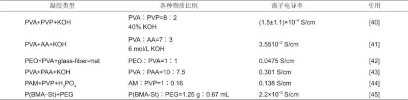 表2 各種聚合物凝膠電解質(zhì)離子電導(dǎo)率