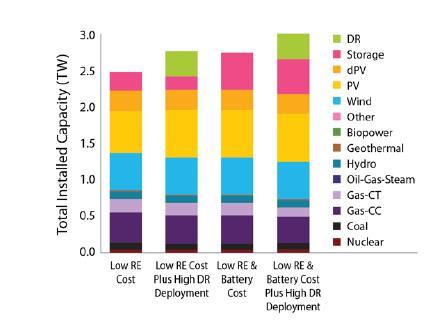 值得關注的是,即使沒有額外的碳減排政策,可再生能源和儲能系統(tǒng)也會得到大量部署,這表明它們作為提供能源和容量服務的資源的成本競爭力日益增強。