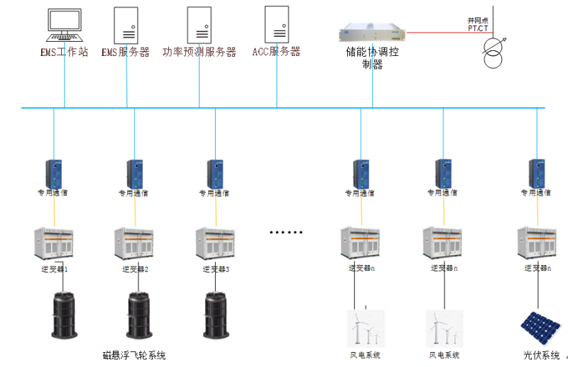 飛輪管理系統(tǒng)FMS(FlywheelManageSystem)對(duì)飛輪儲(chǔ)能陣列(單元)內(nèi)的飛輪儲(chǔ)能模組的電壓、電流、SOC,溫度、真空、隔離開關(guān),充放電,保護(hù)等參數(shù)和控制進(jìn)行管理,同時(shí)能通過CAN總線或其他方式與PCS、儲(chǔ)能控制系統(tǒng)及EMS系統(tǒng)聯(lián)機(jī)通信,實(shí)現(xiàn)對(duì)電池進(jìn)行優(yōu)化的充放電管理控制。具體的,F(xiàn)MS應(yīng)具有以下功能:1)數(shù)據(jù)測(cè)量采集、2)數(shù)據(jù)計(jì)算、3)狀態(tài)參數(shù)數(shù)據(jù)上傳、4)故障診斷、5)電氣保護(hù)、6)電池管理、7)統(tǒng)計(jì)功能、8)通訊功能、9)對(duì)時(shí)功能、10)定值設(shè)置功能、11)操作權(quán)限管理功能、12)事件記錄功能、13)存儲(chǔ)功能、14)故障錄波15)電磁兼容能力、16)耐濕熱性能。