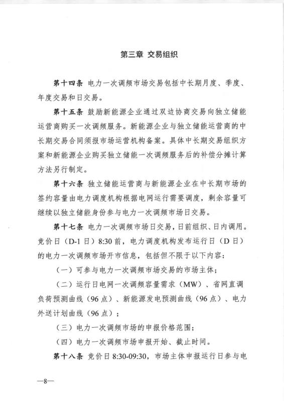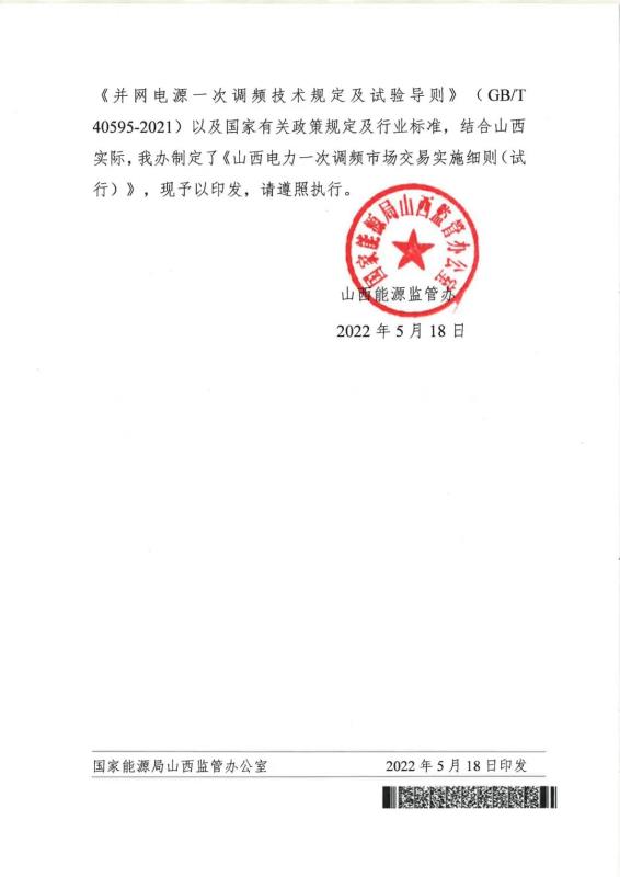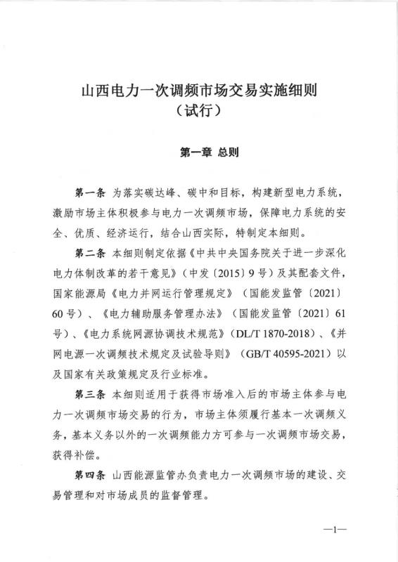 中國儲能網(wǎng)訊:5月18日,山西能源監(jiān)管辦印發(fā)《山西電力一次調(diào)頻市場交易實施細(xì)則(試行)》的通知,市場主體包括發(fā)電側(cè)并網(wǎng)主體及新型儲能。鼓勵新能源企業(yè)通過雙邊協(xié)商交易向獨(dú)立儲能運(yùn)營商購買一次調(diào)頻服務(wù)。新能源企業(yè)與獨(dú)立儲能運(yùn)營商的中長期交易合同須報市場運(yùn)營機(jī)構(gòu)備案。具體中長期交易組織方案和新能源企業(yè)購買獨(dú)立儲能一次調(diào)頻服務(wù)后的補(bǔ)償分?jǐn)傆嬎惴椒硇兄贫?。這是正式發(fā)布的全國首個針對新型儲能參與一次調(diào)頻有償服務(wù)的地方政策。