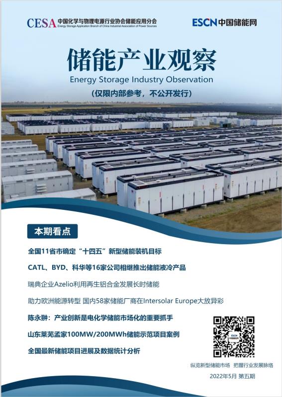 《儲(chǔ)能產(chǎn)業(yè)觀察》為電子版刊物,不對(duì)外公開(kāi)發(fā)行,主要從業(yè)界關(guān)心的政策、標(biāo)準(zhǔn)、新型儲(chǔ)能技術(shù)、企業(yè)動(dòng)態(tài)、項(xiàng)目統(tǒng)計(jì)、國(guó)際趨勢(shì)、產(chǎn)業(yè)觀察、典型應(yīng)用案例、主要活動(dòng)等層面發(fā)布信息,每月1期,目前僅面向協(xié)會(huì)會(huì)員單位和戰(zhàn)略合作單位定向發(fā)行。