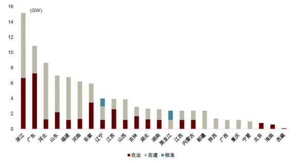 各省市在建、在運抽水蓄能裝機(2022年4月)