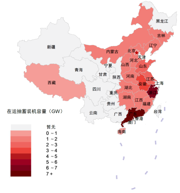 當前抽水蓄能裝機主要集中在我國東南部 (統(tǒng)計截至2022年4月)