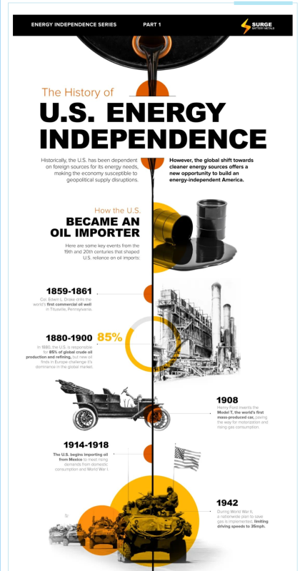 1859年,埃德溫·德雷克上校在賓夕法尼亞州的泰特斯維爾開發(fā)了一口油井,這是美國首次商業(yè)化開采石油。20年后的1880年,美國已經占全球85%的原油生產和精煉。但在接下來的一個世紀里,美國越來越依賴石油進口。