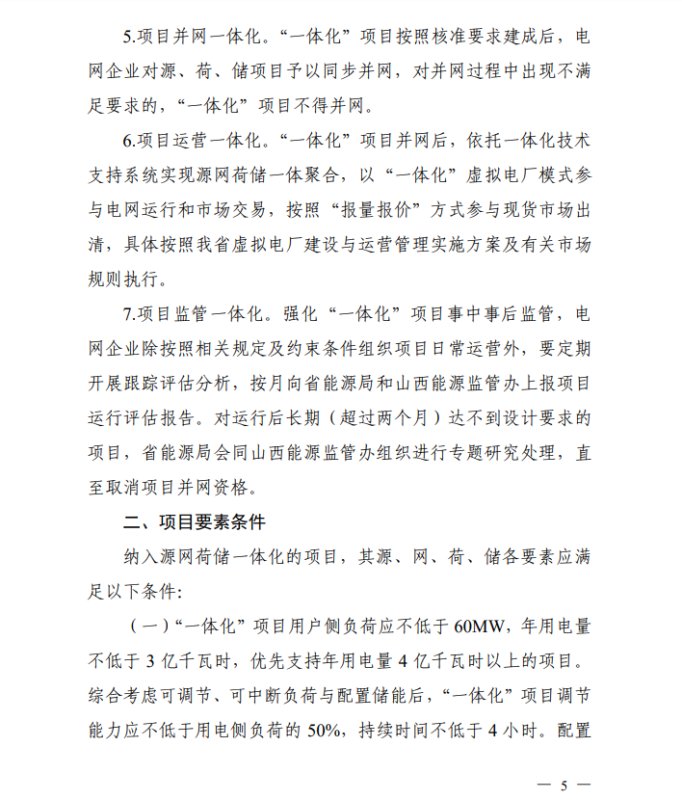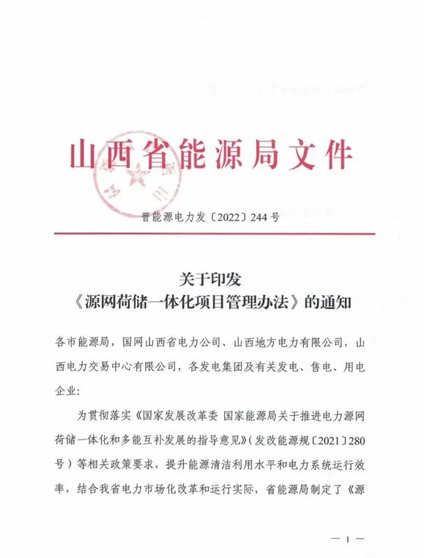 山西省能源局印發(fā)《源網(wǎng)荷儲(chǔ)一體化項(xiàng)目管理辦法》