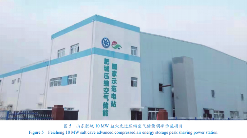 近 3年來,壓縮空氣儲能技術(shù)在系統(tǒng)集成示范方面,國內(nèi)相關(guān)科研機(jī)構(gòu)與企業(yè)取得了顯著的成績。中國科學(xué)院工程熱物理研究所儲能研發(fā)團(tuán)隊(duì)于 2021年 9月在山東肥城建成了國際首套 10 MW鹽穴先進(jìn)壓縮空氣儲能商業(yè)示范電站(圖 5);該電站已順利通過發(fā)電并網(wǎng)驗(yàn)收,并正式并網(wǎng)發(fā)電,系統(tǒng)效率達(dá) 60.7% 。位于貴州畢節(jié)的 1 0 MW先進(jìn)壓縮空氣儲能系統(tǒng)于 2021年 10月完成并網(wǎng)發(fā)電12。在河北張家口市張北縣建設(shè)國際首套 100 MW先進(jìn)壓縮空氣儲能國家示范項(xiàng)目,已完成系統(tǒng)研制與示范系統(tǒng)集成建設(shè),正開展系統(tǒng)調(diào)試,計(jì)劃于 2022年底投入商業(yè)運(yùn)行。