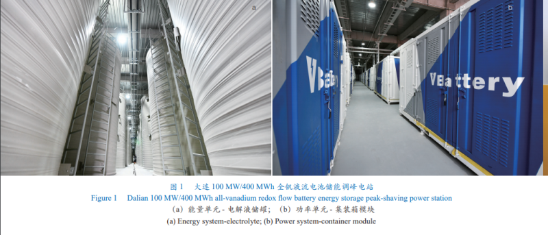 國內(nèi)主要有中國科學(xué)院大連化學(xué)物理研究所(以下簡稱“大連化物所”)、大連融科儲能技術(shù)發(fā)展有限公司(以下簡稱“大連融科”)、北京普能世紀(jì)科技有限公司(以下簡稱“北京普能”)、上海電氣儲能科技有限公司、清華大學(xué)、中國科學(xué)院沈陽金屬研究所、中南大學(xué)等多家機(jī)構(gòu)從事全釩液流電池的研發(fā)及產(chǎn)業(yè)化工作。大連化物所自 2000年開始液流電池的研究,在液流電池關(guān)鍵材料、核心部件、電堆及系統(tǒng)設(shè)計(jì)集成、控制管理等方面都取得了國際領(lǐng)先的成果;已在液流電池領(lǐng)域獲得國家授權(quán)專利 150余項(xiàng),國際專利 7項(xiàng),形成了完整的自主知識產(chǎn)權(quán)體系。2021年在大連瓦房店建成了目前國內(nèi)最大規(guī)模的全釩液流電池系統(tǒng),即大唐國際鎮(zhèn)海網(wǎng)源友好型風(fēng)電場 10 MW/40 MWh和國電投駝山網(wǎng)源友好型風(fēng)電場 10 MW/40 MWh全釩液流電池系統(tǒng)。在國家及地方政府的大力支持下,成功推進(jìn)了全球最大 200 MW/800MWh全釩液流電池儲能調(diào)峰電站國家示范項(xiàng)目一期工程(100 MW/400 MWh)的全面開工建設(shè)。目前,100 MW儲能系統(tǒng)項(xiàng)目已完成主體工程建設(shè)(圖 1),進(jìn)入單體模塊調(diào)試階段,預(yù)計(jì) 2022年 6月完成并網(wǎng)調(diào)試,這將對緩解大連市乃至遼寧省電網(wǎng)調(diào)峰壓力、提高大連南部地區(qū)供電可靠性、加快新能源發(fā)展發(fā)揮重要作用。
