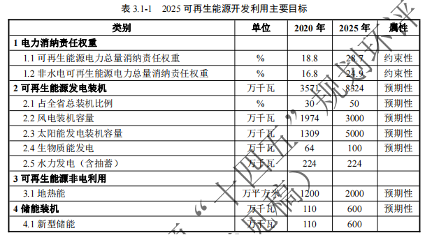 發(fā)展目標:到2025年,全省可再生能源發(fā)電裝機達到8300萬千瓦以上。其中:風電3000萬千瓦左右、光伏5000萬千瓦左右、水電(含抽蓄)224萬千瓦以上、生物質(zhì)能發(fā)電100萬千瓦以上,新型儲能裝機達到600萬千瓦左右,地熱能供暖面積2000萬平米左右。實現(xiàn)新能源和清潔能源裝機容量占比達到50%的目標。到2030年,全省新能源和清潔能源裝機容量占比達到60%以上。