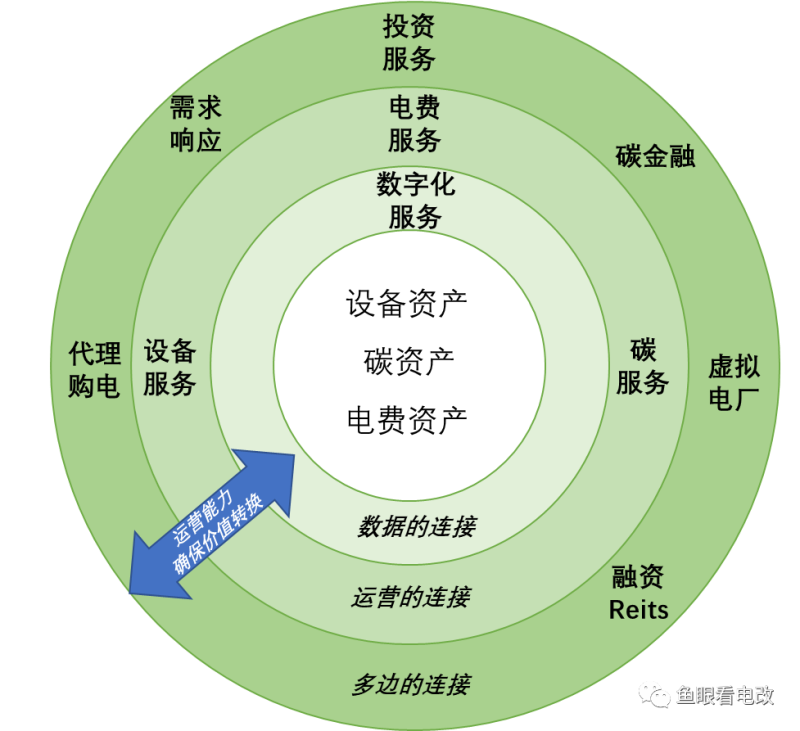三類資產(chǎn),即圍繞負(fù)荷側(cè)的設(shè)備資產(chǎn)、碳資產(chǎn)、電費(fèi)資產(chǎn),形成資產(chǎn)托管的運(yùn)營(yíng)模式,更接近于PPP的操作模式。