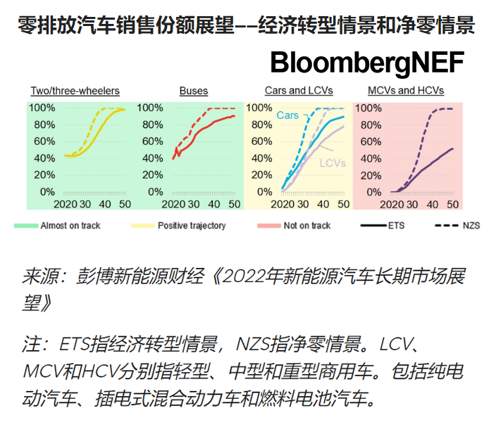其他細(xì)分市場(chǎng)的電氣化也在加速,富裕經(jīng)濟(jì)體和新興經(jīng)濟(jì)體都有越來越多成功的國(guó)家案例研究。例如:中國(guó)新能源公交車和電動(dòng)兩輪車保有量分別達(dá)68.5萬輛和1.95億輛;韓國(guó)2021年輕型商用車銷量中17%是新能源汽車,而印度三輪車中有近40%已是電動(dòng)三輪車。