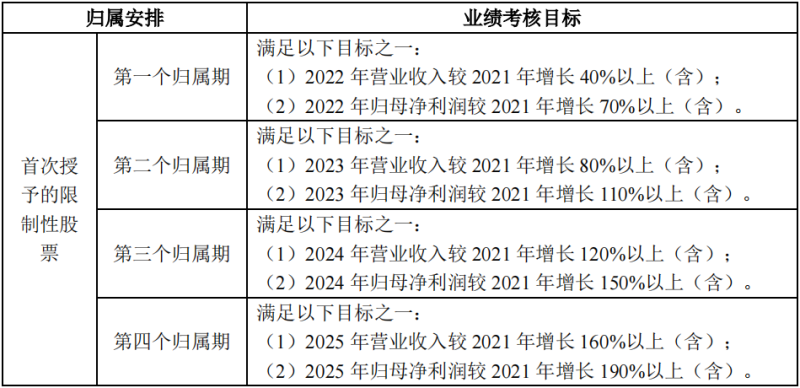 對于市場展望,陽光電源依舊十分樂觀:大幅調(diào)高了2022年?duì)I收預(yù)期。股權(quán)激勵(lì)也顯露出這一點(diǎn):幾個(gè)歸屬期要求逐年增加。從往年看,尤其是歸母凈利潤一項(xiàng),除了上市早期及2017、2020年等個(gè)別年份,能夠達(dá)標(biāo)的并不多。