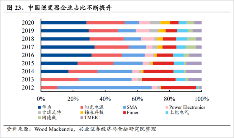 另外,技術(shù)領(lǐng)先也是實(shí)現(xiàn)趕超的重要原因,尤其以陽光電源和華為為引領(lǐng)。