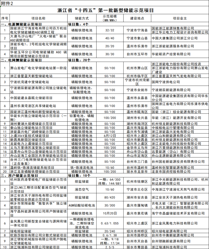 2.浙江省“十四五”第一批新型儲(chǔ)能示范項(xiàng)目