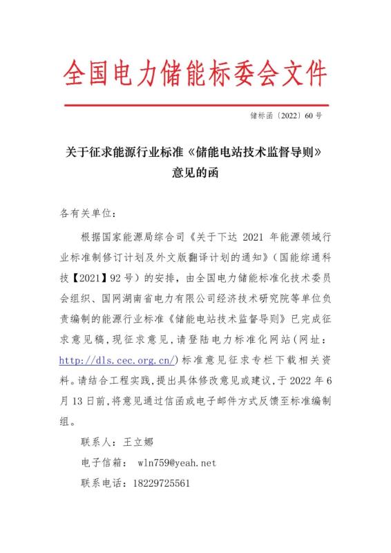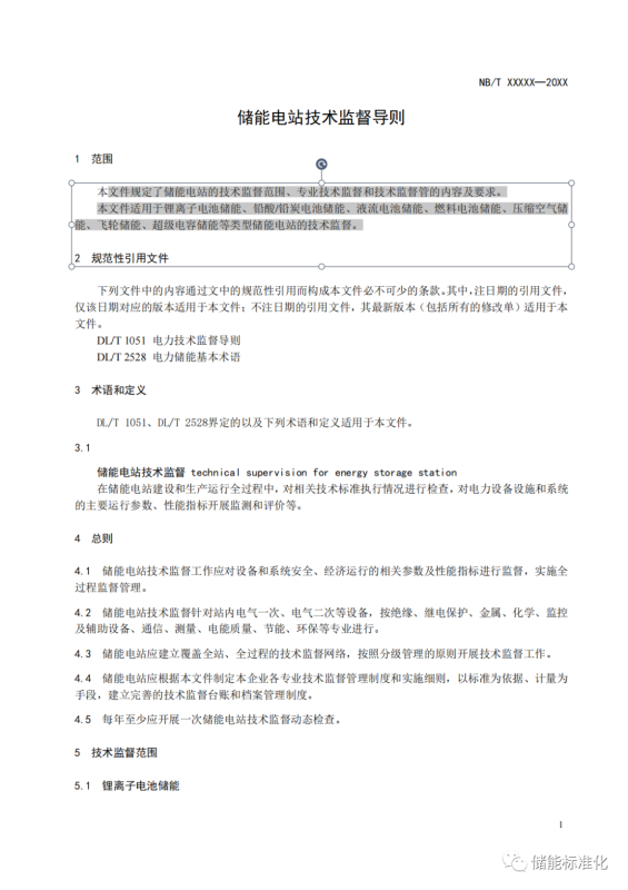 行業(yè)標(biāo)準(zhǔn)《儲(chǔ)能電站技術(shù)監(jiān)督導(dǎo)則》征求意見