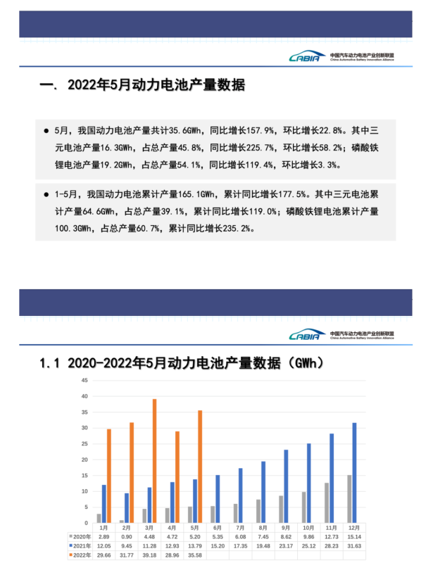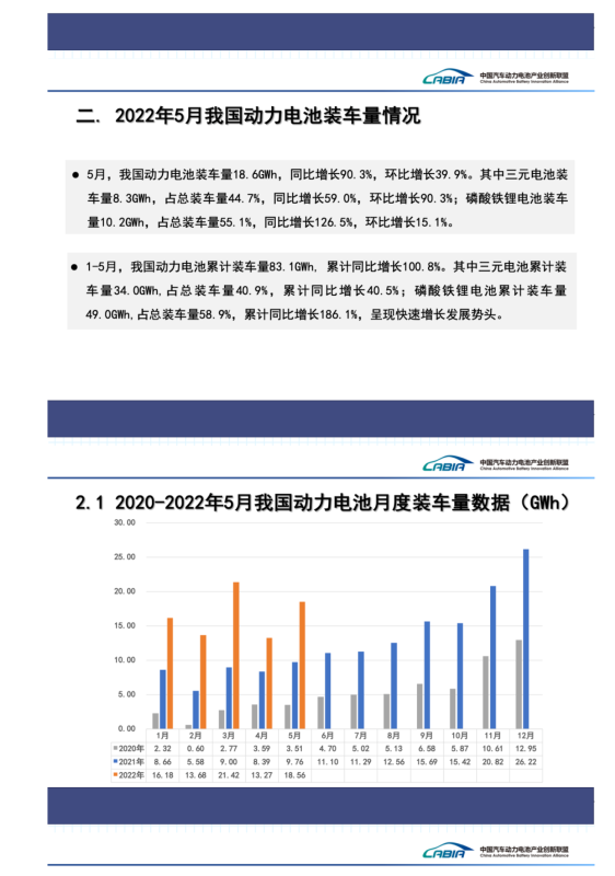 中國儲能網(wǎng)訊:2022年5月動力電池月度數(shù)據(jù)發(fā)布如下。