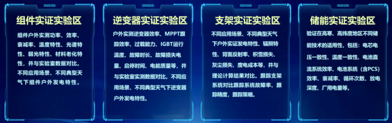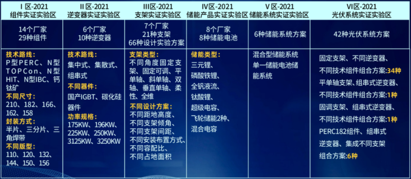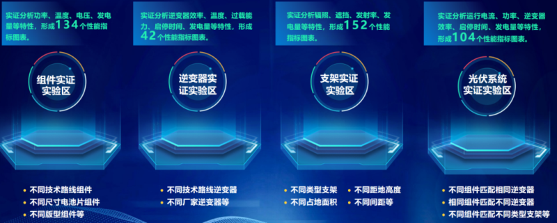 其中,平臺(tái)一期布置了6個(gè)實(shí)證實(shí)驗(yàn)對(duì)比區(qū),實(shí)證實(shí)驗(yàn)方案161種,包括4個(gè)產(chǎn)品實(shí)證實(shí)驗(yàn)區(qū):光伏組件、逆變器、支架、儲(chǔ)能產(chǎn)品,以及2個(gè)系統(tǒng)實(shí)證實(shí)驗(yàn)區(qū):光伏系統(tǒng)、儲(chǔ)能系統(tǒng)。每個(gè)實(shí)證區(qū)幾乎涵蓋了當(dāng)下國內(nèi)主流的先進(jìn)技術(shù)類型。以組件實(shí)證實(shí)驗(yàn)區(qū)為例,技術(shù)路線從Perc到N型的TOPCon、異質(zhì)結(jié)以及IBC,甚至鈣鈦礦都被納入實(shí)證范圍,還包括了不同的尺寸、封裝方式、版型的多種類型組件,可以更好的結(jié)合實(shí)驗(yàn)室數(shù)據(jù)給行業(yè)提供參考與借鑒。