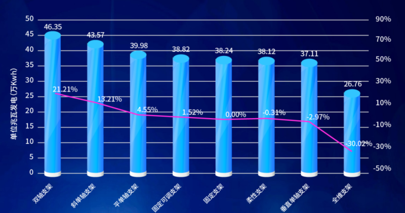 從支架的實(shí)證數(shù)據(jù)來看,雙軸發(fā)電量最高,垂直單軸和全維支架故障較高,發(fā)電量偏低,不同類型支架發(fā)電量與輻照趨勢基本一致。此前,從數(shù)據(jù)分析可以看到,跟蹤支架實(shí)測背面輻照增益與理論背面輻照增益差距較大。報(bào)告建議,隨著跟蹤支架的規(guī)?;瘧?yīng)用,應(yīng)開發(fā)一套用于計(jì)算跟蹤支架背面發(fā)電量的軟件。