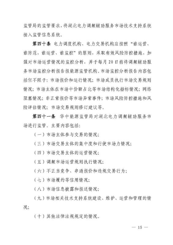 華中能源監(jiān)管局關于《湖北電力調(diào)頻輔助服務市場交易規(guī)則(征求意見稿)》公開征求意見的通知