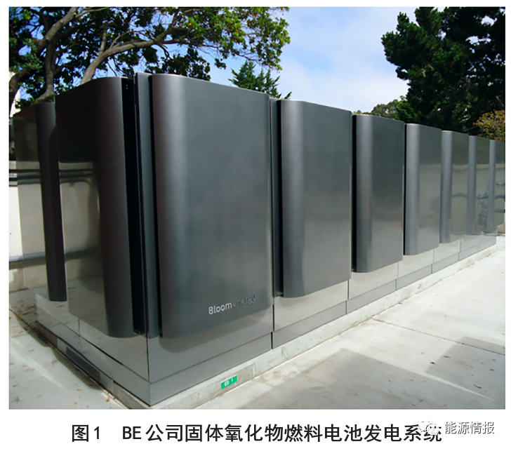 圖1為BE公司投放的固體氧化物燃料電池發(fā)電系統(tǒng)產(chǎn)品,其標(biāo)準(zhǔn)配置可產(chǎn)生250 k W的功率,占地面積大約相當(dāng)于30 ft集裝箱的一半,發(fā)電效率高達(dá)65%,處于世界領(lǐng)先水平,通過提供安全可靠供電服務(wù)于銀行和金融服務(wù)、數(shù)據(jù)中心、政府、酒店、物流等各個行業(yè),主要客戶包括蘋果公司、沃爾瑪百貨有限公司、美國銀行、谷歌公司等數(shù)十家全球財(cái)富百強(qiáng)公司。除了比較知名的 BE 公司外,F(xiàn)uelCell Energy 等公司也積極進(jìn)行固體氧化物燃料電池研發(fā)布局。美國固體氧化物燃料電池技術(shù)推進(jìn)得益于美國聯(lián)邦政府的積極引導(dǎo)和財(cái)政支持,同時(shí)一些地方州政府也通過補(bǔ)貼或稅收減免等方式,推動固體氧化物燃料電池產(chǎn)品投放。