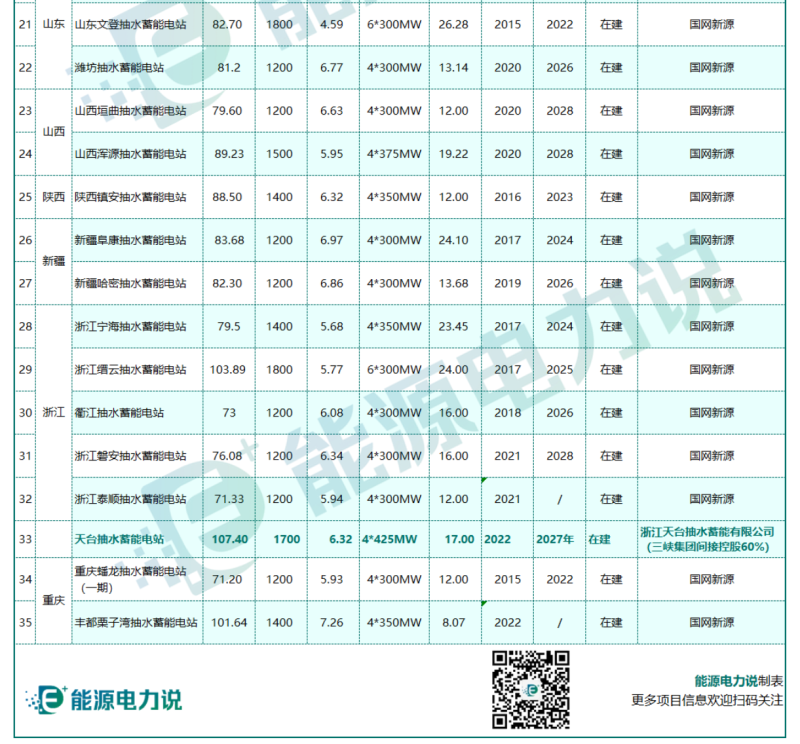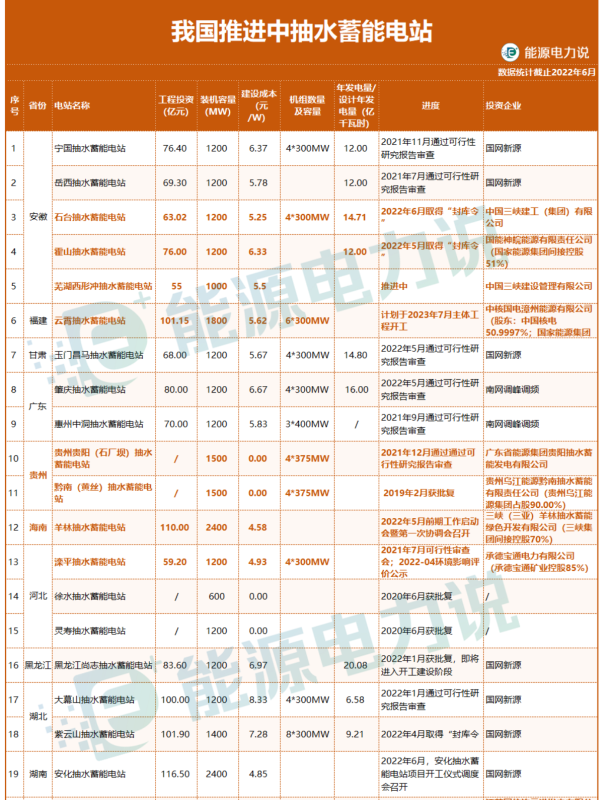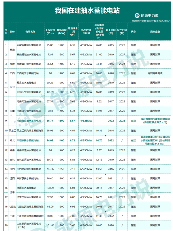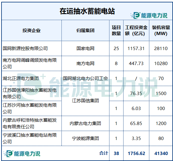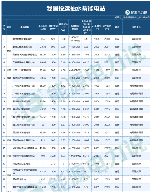 38個(gè)投運(yùn)抽水蓄能電站名單如下 :