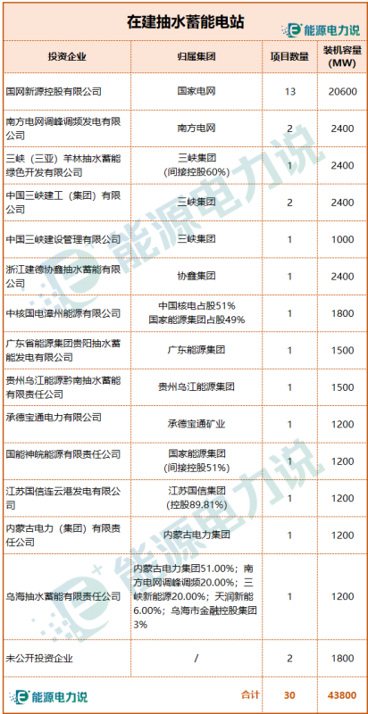 根據(jù)國(guó)家及地方“十四五”規(guī)劃公開(kāi)數(shù)據(jù),能源電力說(shuō)統(tǒng)計(jì)了30個(gè)正在推進(jìn)的抽水蓄能項(xiàng)目,總投資超2000億元,容量規(guī)模達(dá)43.8GW。