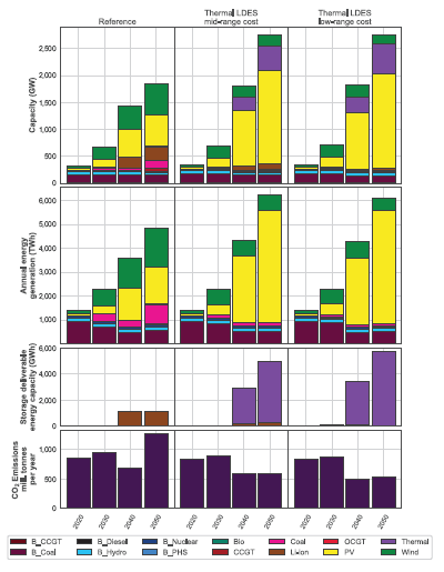 圖7.17參考案例(第1列)和中低成本長時(shí)儲能案例(分別為第2列和第3列)的模型結(jié)果
