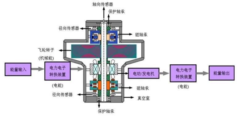 飛輪儲能系統(tǒng)是一種機電能量轉(zhuǎn)換的儲能裝置,突破了化學電池的局限,用物理方法實現(xiàn)儲能。通過電動/發(fā)電互逆式雙向電機,電能與高速運轉(zhuǎn)飛輪的機械動能之間的相互轉(zhuǎn)換與儲存,并通過調(diào)頻、整流、恒壓與不同類型的負載接口。飛輪儲能放電已經(jīng)被提出200多年,但是直到1970年代,綜合機電加工能力達標后才首次實用化。