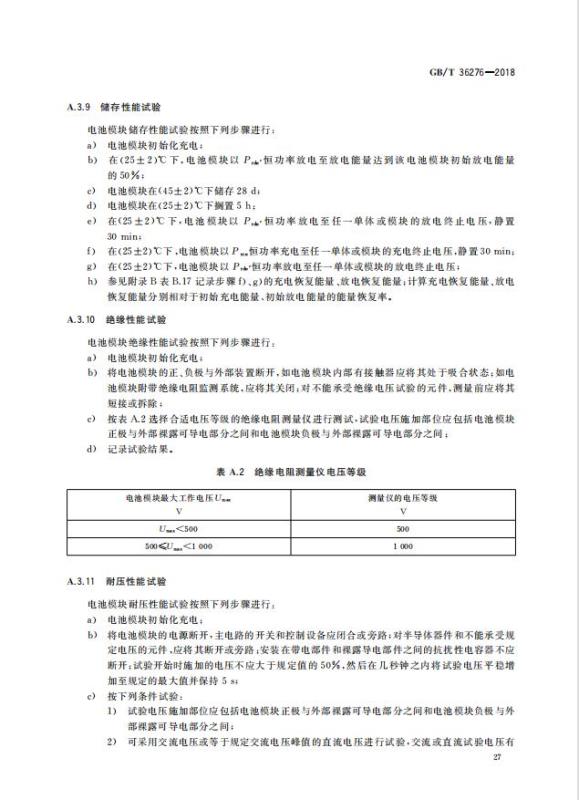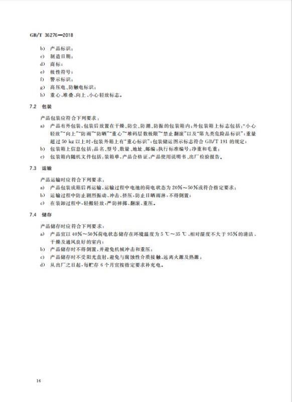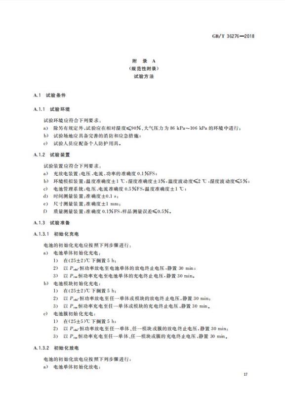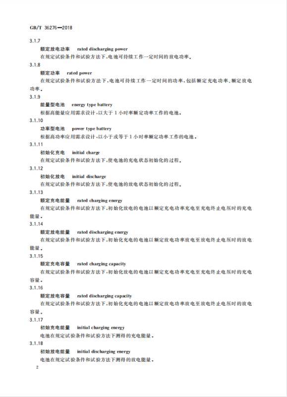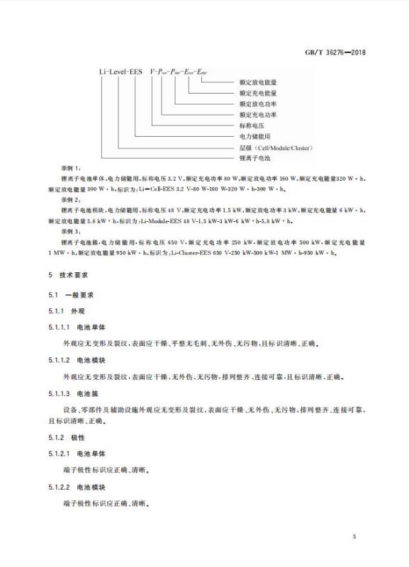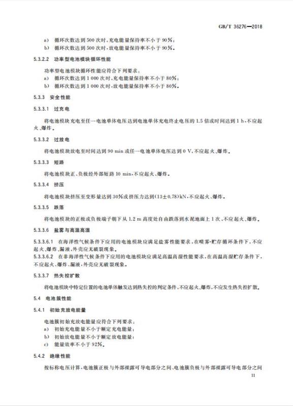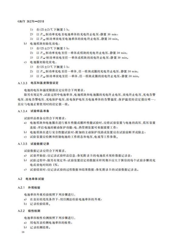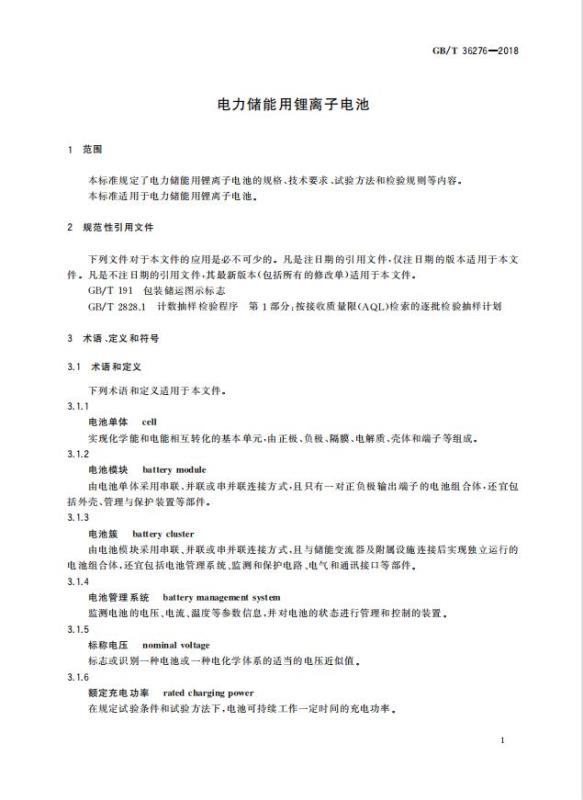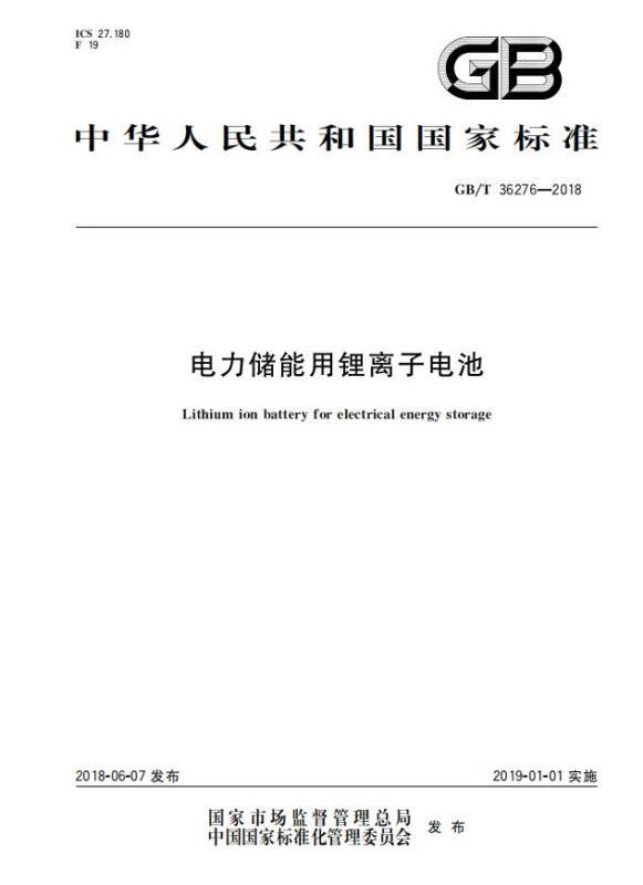 GB/T 36276-2018《電力儲(chǔ)能用鋰離子電池》