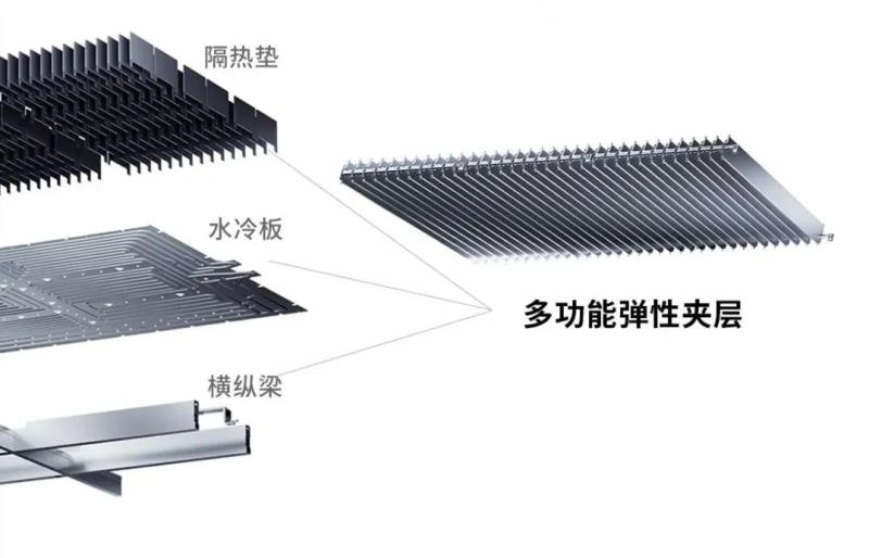 同時(shí),由電芯與多功能彈性?shī)A層組成一體化能量單元。在垂直于行車方向上構(gòu)建更穩(wěn)固的受力結(jié)構(gòu),提高電池包結(jié)構(gòu)強(qiáng)度與抗沖擊能力。