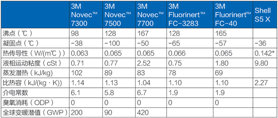 目前,3M公司是全球生產(chǎn)浸沒(méi)式電子氟化液的領(lǐng)先企業(yè),其生產(chǎn)的Fluorinert?電子氟化液與Novec?電子工程液均有不同型號(hào)可以用于雙相浸沒(méi)式液冷。兩者均有優(yōu)良的熱穩(wěn)定性和化學(xué)穩(wěn)定性、無(wú)味、不可燃、非油基、低毒性、無(wú)腐蝕性,可為數(shù)據(jù)中心提供可信賴且可持續(xù)的解決方案。