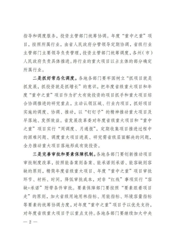要抓好項目實施的調(diào)度、協(xié)調(diào)、推動,以“釘釘子”的精神推動重大項目及早落地,發(fā)揮效益。要定期收集項目推動過程中的困難問題,調(diào)度重大項目進展,研究需省級層面解決的問題,全力推動重大項目落地形成有效投資。