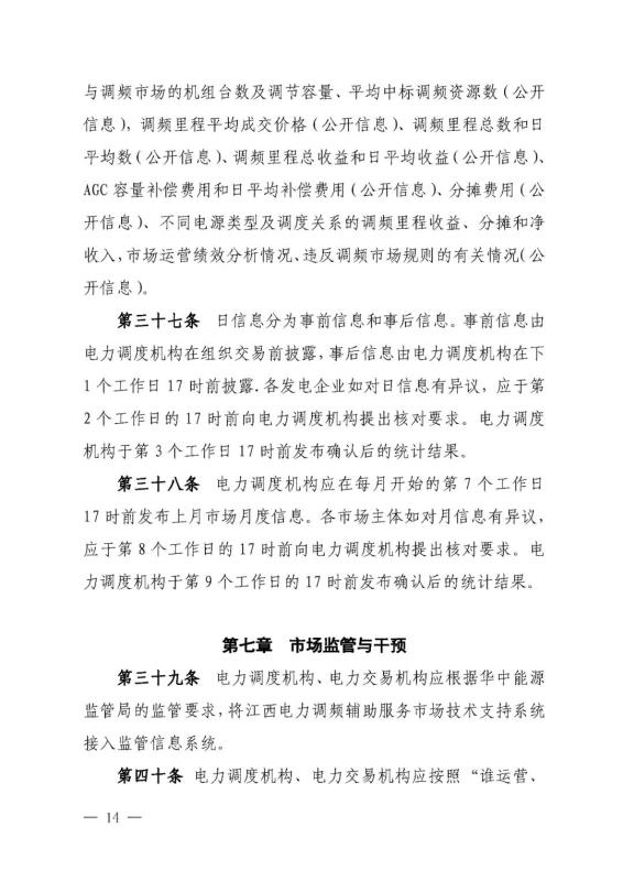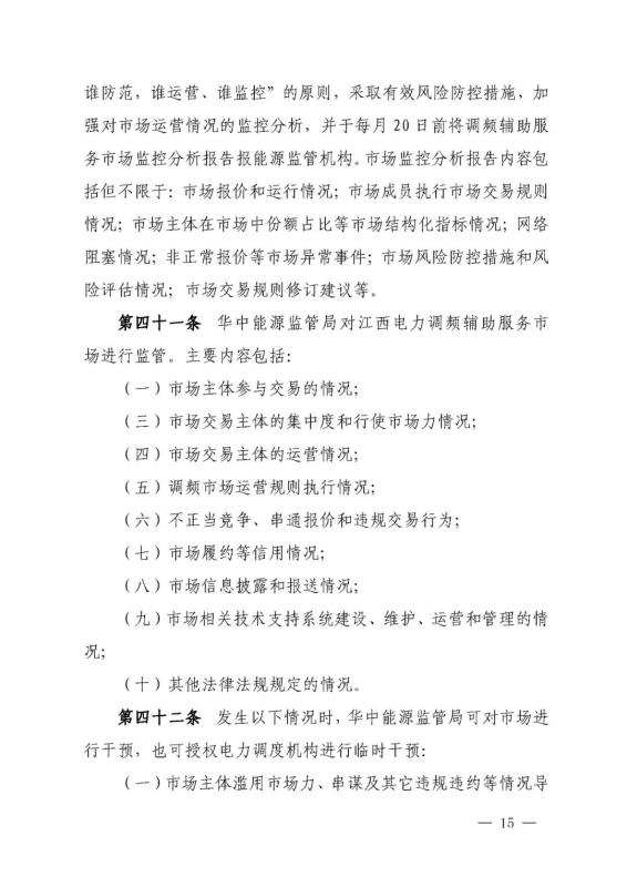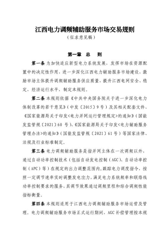 華中能源監(jiān)管局關(guān)于《江西電力調(diào)頻輔助服務(wù)市場(chǎng)交易規(guī)則(征求意見稿)》公開征求意見的通知