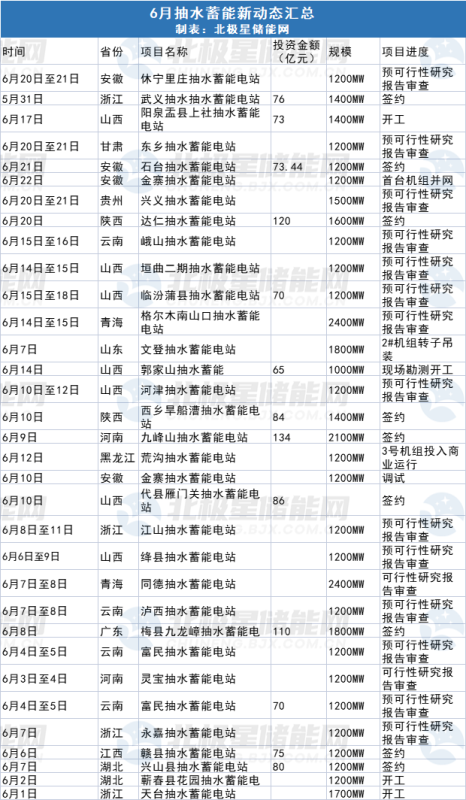中國(guó)儲(chǔ)能網(wǎng)訊:自6月來(lái),有33個(gè)抽水蓄能電站項(xiàng)目更新了動(dòng)態(tài),規(guī)模超44GW,其中包含預(yù)可行性研究報(bào)告審查、簽約、開(kāi)工等動(dòng)態(tài)。