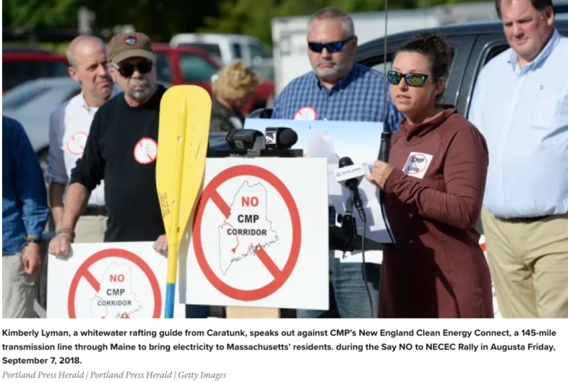 反對建設(shè)輸電線路的公民組織成一個名為“對NECEC說不”的團(tuán)體,這是該項目名稱New England Clean Energy Connect的首字母縮寫。該團(tuán)體的負(fù)責(zé)人是46歲的桑迪·霍華德,是基恩州立學(xué)院的音樂教授?;羧A德表示希望保護(hù)其環(huán)境和生活方式。她說,修建輸電線“將對緬因州的自然資源、風(fēng)景特征、對緬因州四季娛樂旅游業(yè)的經(jīng)濟(jì)影響產(chǎn)生巨大影響。”