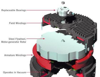 飛輪技術(shù)是化學(xué)蓄電池技術(shù)的替代品。ActivePower公司生產(chǎn)基于飛輪技術(shù)的集成UPS系統(tǒng)及直流電源系統(tǒng)。小巧的轉(zhuǎn)子在摩擦力很小的環(huán)境中旋轉(zhuǎn),飛輪儲(chǔ)能系統(tǒng)通過(guò)這種方法儲(chǔ)存動(dòng)能。當(dāng)因市電波動(dòng)而需短時(shí)間的備用電源時(shí)或市電中斷時(shí),轉(zhuǎn)子的動(dòng)能將轉(zhuǎn)換成電能。