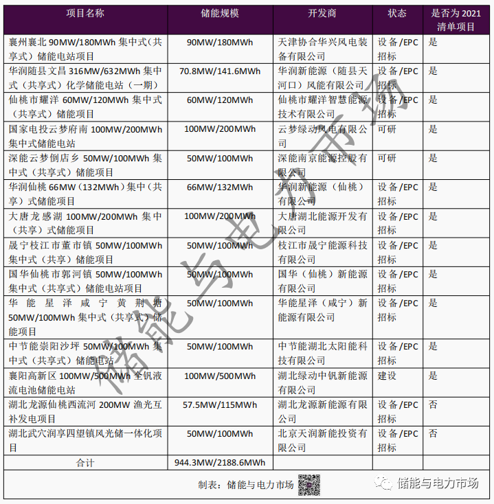 湖北目前已經(jīng)啟動(dòng)的儲(chǔ)能項(xiàng)目主要源自2021年9月發(fā)布《湖北省能源局關(guān)于2021年平價(jià)新能源項(xiàng)目審查結(jié)果的公示》(簡稱”2021項(xiàng)目清單“)。該項(xiàng)目清單共包含了38個(gè)化學(xué)儲(chǔ)能電站,總規(guī)模超2.6GW/5.0GWh。其中,獨(dú)立儲(chǔ)能電站共36個(gè),風(fēng)光儲(chǔ)一體化項(xiàng)目1個(gè),漁光互補(bǔ)儲(chǔ)能項(xiàng)目1個(gè)。上述已啟動(dòng)的項(xiàng)目中,源自2021項(xiàng)目清單的項(xiàng)目共12個(gè),儲(chǔ)能容量達(dá)到836.8MW/1973.6MWh。具體項(xiàng)目名單詳見:38個(gè)儲(chǔ)能項(xiàng)目,總計(jì)規(guī)模超2.6GW/5.0GWh,湖北發(fā)布2021年平價(jià)新能源項(xiàng)目審查結(jié)果。