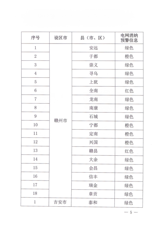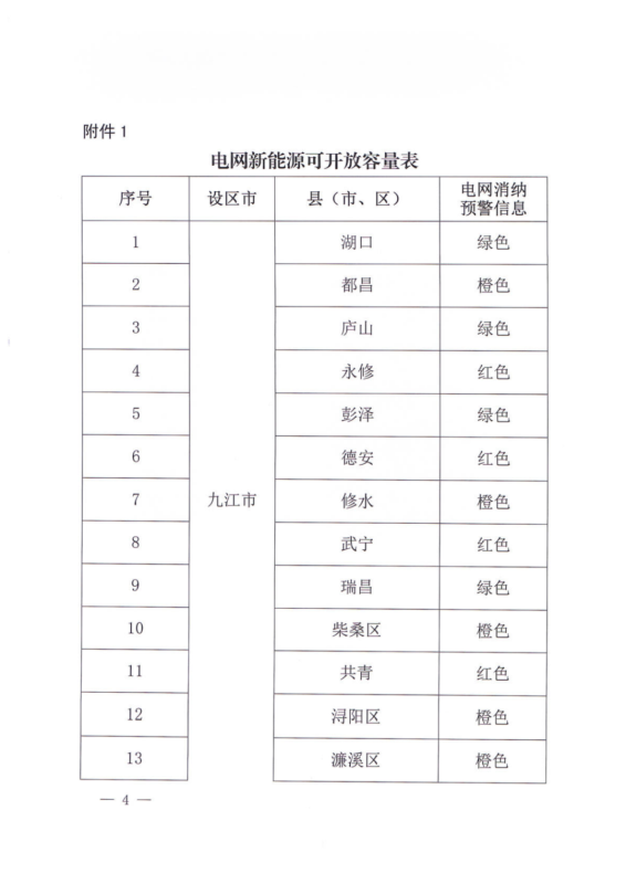 文件指出,由于新能源可開(kāi)發(fā)容量呈現(xiàn)飽和狀態(tài),故給出部分市縣電網(wǎng)新能源可開(kāi)放容量表。江西的94個(gè)縣市區(qū)中,已經(jīng)有27個(gè)電網(wǎng)消納預(yù)警信息為紅色,12個(gè)為橙色。