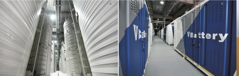 (a)能量單元 - 電解液儲罐; (b)功率單元 - 集裝箱模塊