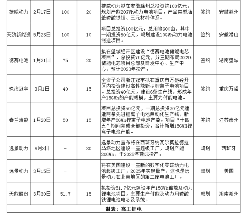 五、中國(guó)動(dòng)力電池企業(yè)進(jìn)入全球產(chǎn)能大擴(kuò)張時(shí)代。國(guó)軒高科將啟動(dòng)歐洲首個(gè)電池生產(chǎn)運(yùn)營(yíng)基地改造,遠(yuǎn)景動(dòng)力規(guī)劃美國(guó)、英國(guó)、法國(guó)、西班牙零碳超級(jí)動(dòng)力電池工廠建設(shè),億緯鋰能落戶匈牙利建設(shè)圓柱電池工廠。