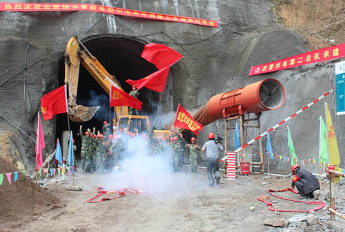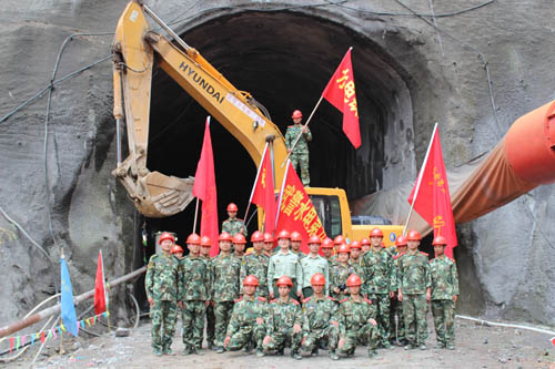電站引水隧洞施工支洞,全長944米,地質(zhì)條件復(fù)雜,交通條件極差,與上下庫連接公路工程形成立體交叉作業(yè),施工難度大、安全風(fēng)險高、工期時間緊。開工以來,承擔(dān)施工任務(wù)的武警水電二總隊官兵認(rèn)真貫徹落實工程施工要求,科學(xué)編排施組,合理配置資源,精心組織施工。針對施工中遇到的各種復(fù)雜問題,不等不靠,迅速組織技術(shù)人員現(xiàn)場攻關(guān),不斷優(yōu)化調(diào)整施工方案。針對高邊坡施工危險性大等特點,突出安全防控重點,實現(xiàn)了“安全、質(zhì)量、進(jìn)度”三大控制目標(biāo),確保了施工快速有序推進(jìn)。全體參戰(zhàn)官兵發(fā)揚特別能吃苦,特別能戰(zhàn)斗,特別能忍耐,特別能奉獻(xiàn)的光榮傳統(tǒng),頑強拼搏,克服種種困難,提前8天勝利實現(xiàn)施工支洞貫通目標(biāo),且隧洞光面爆破效果顯著,殘孔率高。1號支洞順利貫通為引水隧洞全線貫通打下了堅實的基礎(chǔ)。