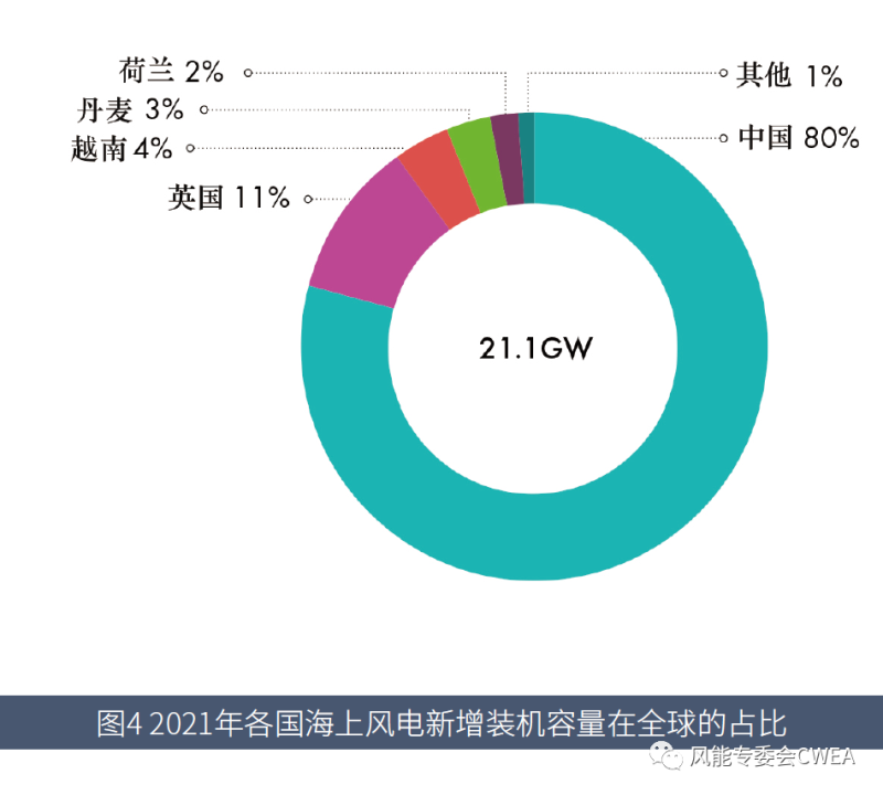 圖4 2021年各國海上風(fēng)電新增裝機容量在全球的占比