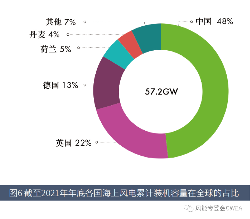 圖6 截至2021年年底各國海上風(fēng)電累計裝機容量在全球的占比