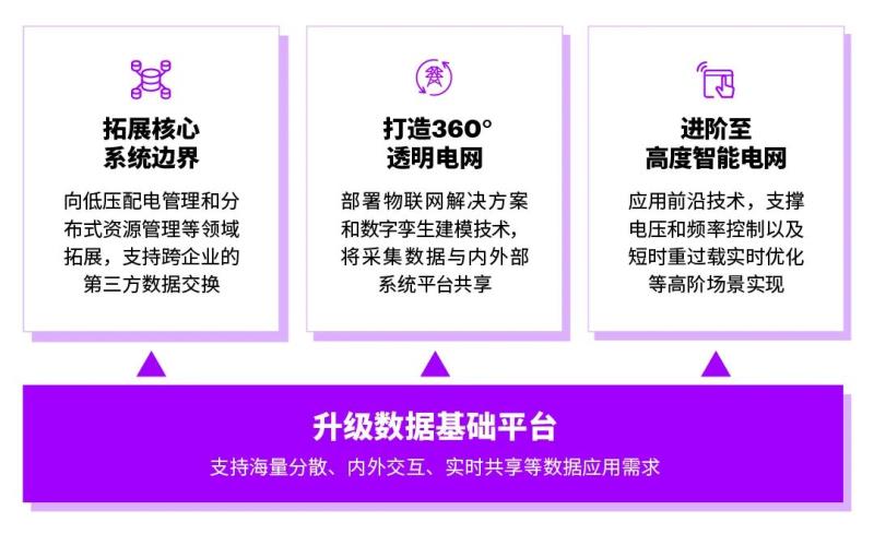 數(shù)據(jù)是未來(lái)能源系統(tǒng)的基石,電網(wǎng)企業(yè)將部署更多數(shù)據(jù)密集型流程,以支持面向新型電力系統(tǒng)的業(yè)務(wù)創(chuàng)新。埃森哲建議結(jié)合自身實(shí)際及監(jiān)管要求,依循升級(jí)數(shù)據(jù)基礎(chǔ)平臺(tái)、拓展核心系統(tǒng)邊界、打造360°透明電網(wǎng)、進(jìn)階至高度智能電網(wǎng)的數(shù)字化演進(jìn)路線,賦能新型電力系統(tǒng)建設(shè)。