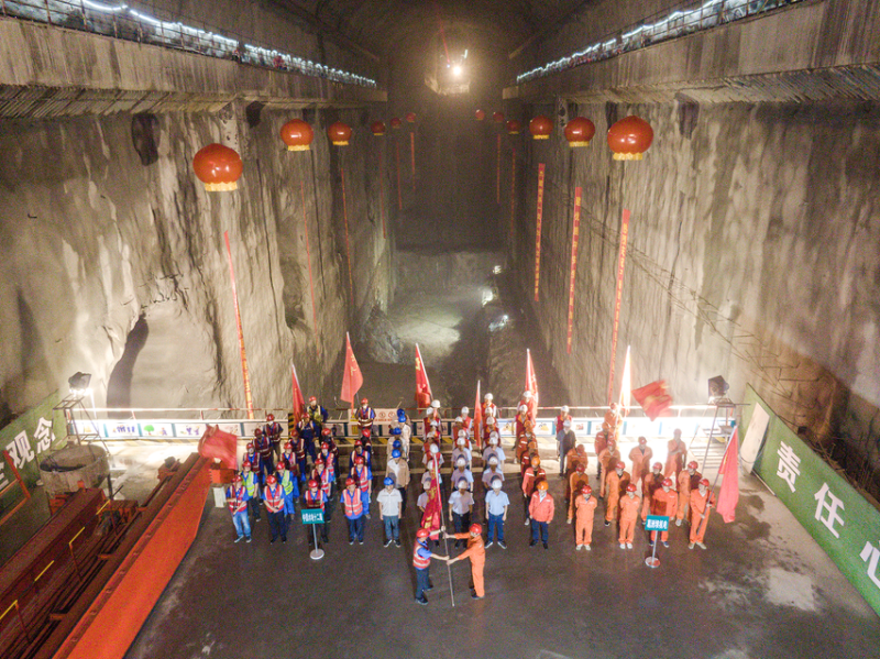 各參建單位在廠房安裝場舉行電站地下廠房及主變洞交面儀式