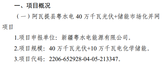 資料顯示,新疆粵水電能源近年動(dòng)作頻頻,2020年該公司在喀什地區(qū)投資建設(shè)的三個(gè)20MW光伏項(xiàng)目已全部并網(wǎng)發(fā)電。2021年又投建新疆巴楚縣150MW光儲(chǔ)一體化項(xiàng)目,占地面積近300公頃,總投資約7.3億元。