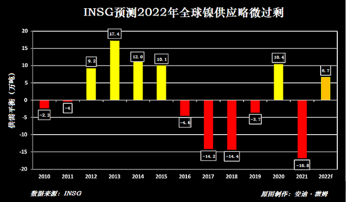 INSG預(yù)計(jì)今年消費(fèi)量將再增長8.6%,歷史上首次超過300萬噸。不過,即使快速擴(kuò)大也不能跟上INSG預(yù)計(jì)的供應(yīng)增長速度。INSG預(yù)計(jì),在印度尼西亞新增產(chǎn)能的推動(dòng)下,全球鎳供應(yīng)量預(yù)計(jì)將大幅增長18.2%。INSG預(yù)測(cè),今年將重現(xiàn)略微過剩狀態(tài),大約過剩6.7萬噸,但是否導(dǎo)致價(jià)格下跌仍存在爭(zhēng)議。