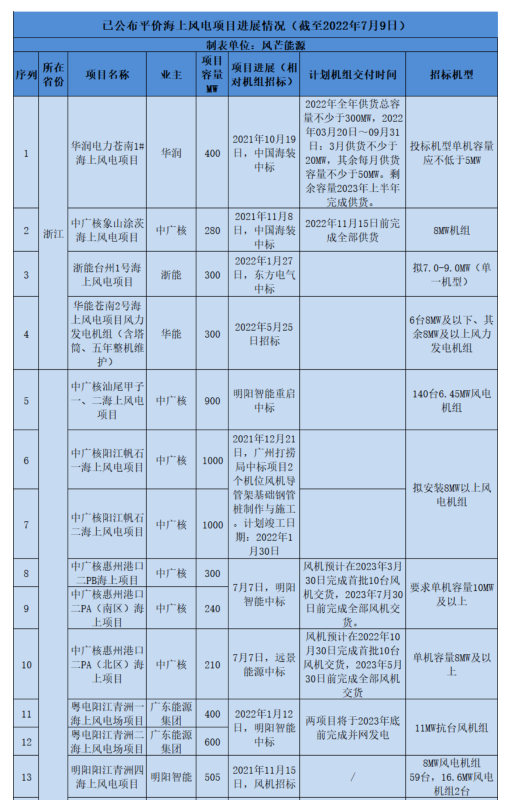 風(fēng)芒能源據(jù)公開信息不完全統(tǒng)計,截至目前,已有20.985GW平價海上風(fēng)電穩(wěn)步推進(jìn)中。