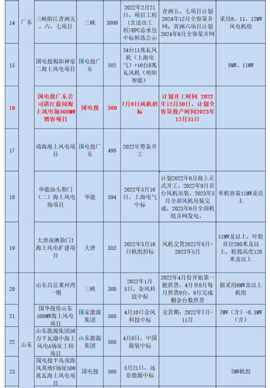 中國儲能網(wǎng)訊:風(fēng)芒能源獲悉,7月8日,國電投廣東公司湛江徐聞海上風(fēng)電場300MW增容項目風(fēng)機(jī)招標(biāo)。