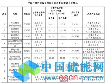 (一)核電公司。包括廣東核電合營有限公司、嶺澳核電有限公司、嶺東核電有限公司、遼寧紅沿河核電有限公司、福建寧德核電有限公司、陽江核電有限公司和臺山核電合營有限公司。