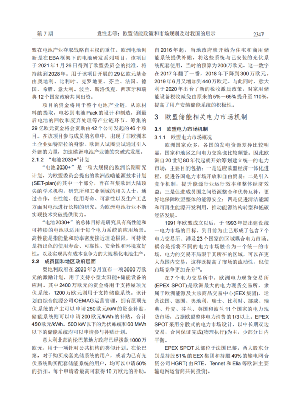 中國(guó)儲(chǔ)能網(wǎng)訊:作為構(gòu)建新型電力系統(tǒng)的關(guān)鍵技術(shù)支撐,儲(chǔ)能的發(fā)展離不開(kāi)政策環(huán)境的支持。歐盟作為電力市場(chǎng)化改革的先行者,在建立統(tǒng)一、充分競(jìng)爭(zhēng)的電力市場(chǎng)過(guò)程中積累了豐富的經(jīng)驗(yàn),目前已經(jīng)形成了成熟的電力現(xiàn)貨市場(chǎng)交易體系與電力平衡機(jī)制,為儲(chǔ)能構(gòu)建商業(yè)模式提供了有利條件。同時(shí)歐盟也不斷在頂層政策和電力市場(chǎng)規(guī)則上做出修改,旨在推動(dòng)儲(chǔ)能的規(guī)模化發(fā)展,為儲(chǔ)能在更大范圍內(nèi)參與電力市場(chǎng)創(chuàng)造有利條件,值得我國(guó)借鑒。